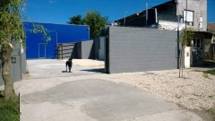 Playón de entrada de 180m2 con piso de concreto con espesor para resistir peso de camiones y samping,