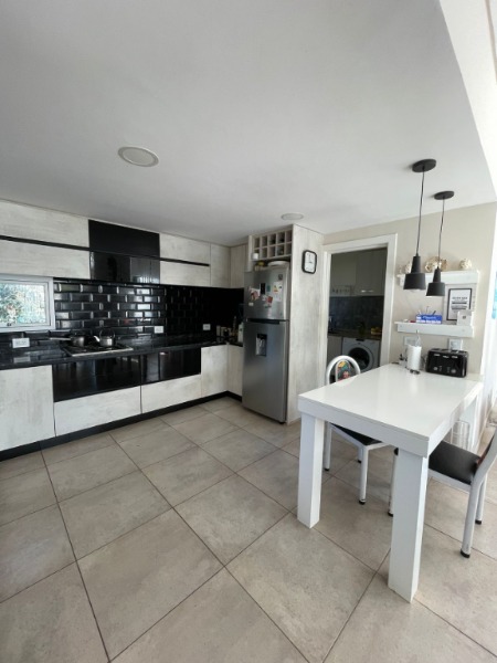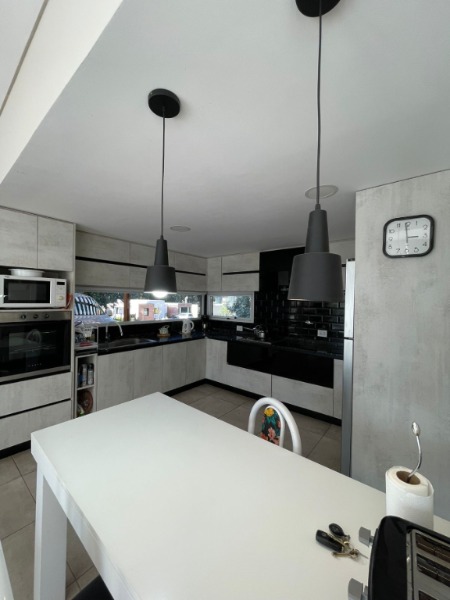 COCINA COMPLETA CON HORNO EMPOTRADO Y ANAFE , INTEGRADA POR BARRA DESAYUNADORA