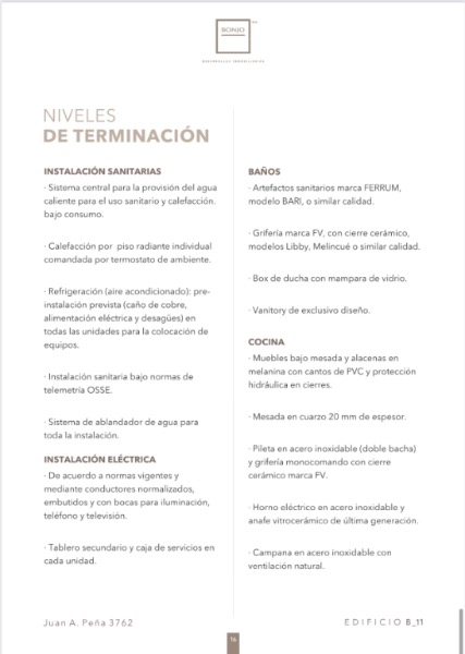 · Refrigeración (aire acondicionado): pre-instalación prevista (caño de cobre, alimentación eléctrica y desagües) en todas las unidades para la colocación de equipos.