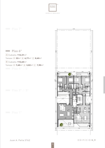 Piso 6: - 2 depto. 3 Ambientes