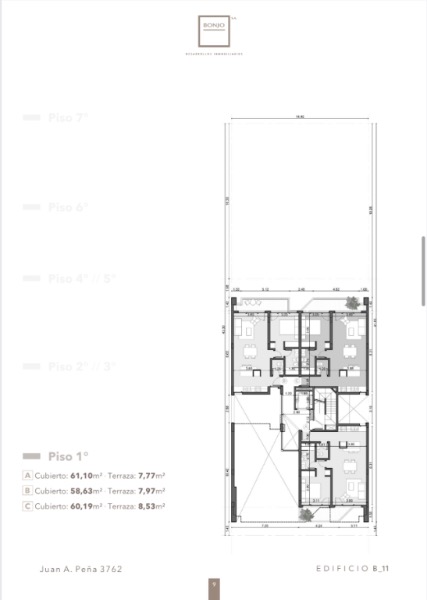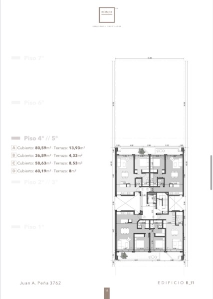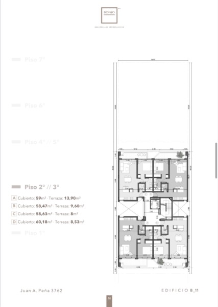 Piso 2 y 3: - 4 deptos. 2 Ambientes