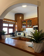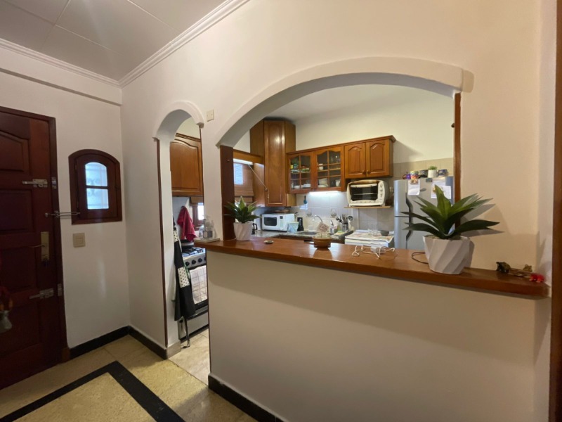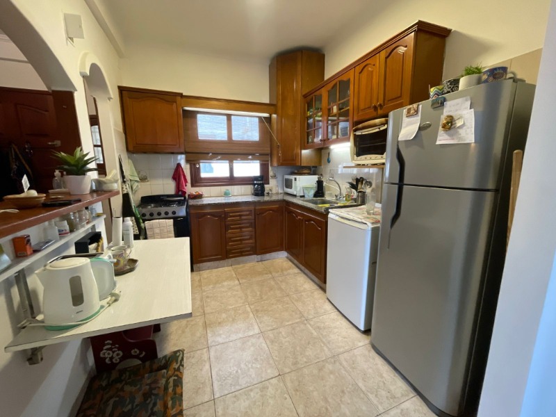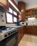 - Cocina preparada con espacio de comedor diario y espacio para lavaropa. Amoblamiento de madera carpintería en madera lustrada.